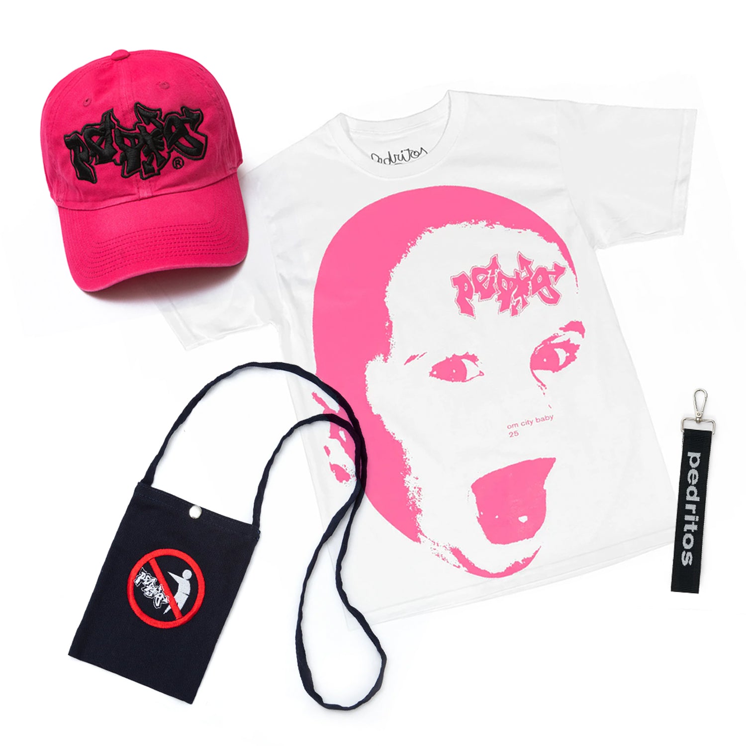 Set incluye; gorra + polera city baby pink + bolsito + llavero